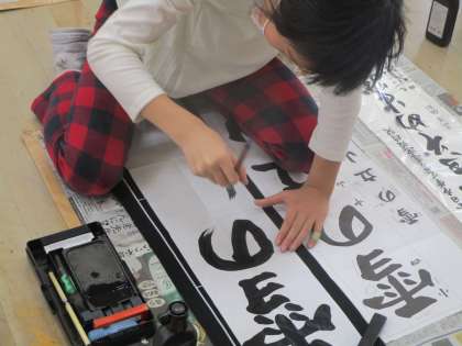 4年生 書き初め練習 公開日 2024/12/04 更新日 2024/12/04 4年生 今年の4年生は、「雪の立山」と書きます。「雪」のバランスや、「の」の丸みを出すのがとても難しく苦戦していますが、しんとした空気で、一文字ずつ集中して書くことができました。