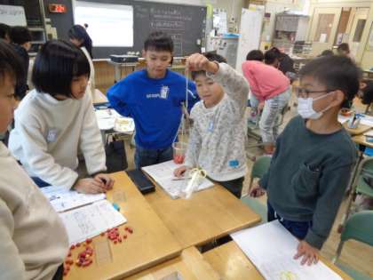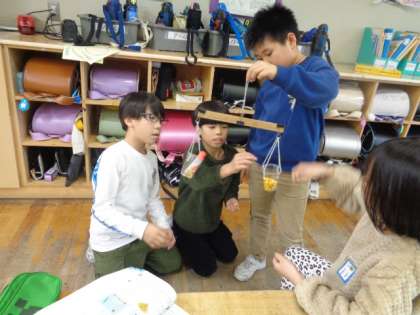 ものさしを使ったてんびんを使って、重さの比べ方や重さを数で表す方法について考えました。