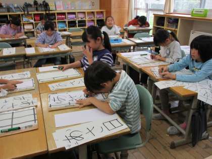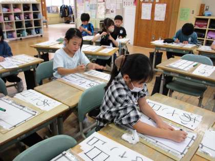 先週から、書き初めの練習を始めました。久しぶりに使う硬筆墨で字を書くと、思うように書けないと言う子供が多くいましたが、お手本をよく見て集中して書いていました。