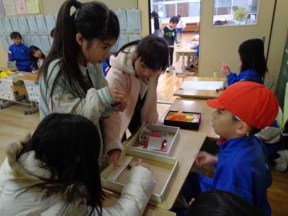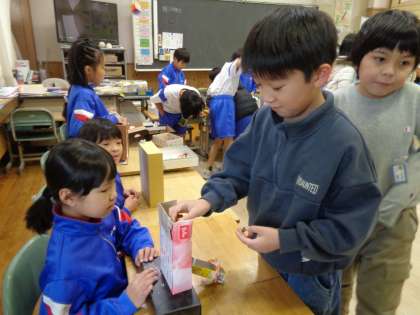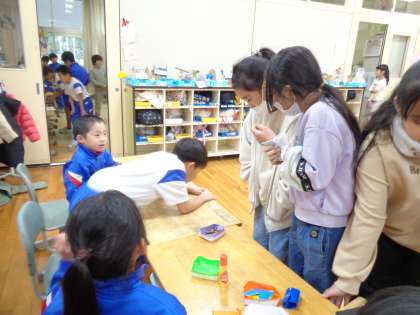 4年生 秋のおもちゃフェスティバル 公開日 2024/12/13 更新日 2024/12/13 4年生 1年竹組さんから秋のおもちゃフェスティバルに招待されました。どんぐりごまや、どんぐり迷路などいろいろなブースがあり、とても楽しい時間でした。