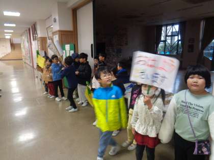 今日と昨日の朝のあいさつ運動に1年松組と竹組が参加しました。運営委員会と一緒に杉の子に元気よく挨拶をしていました。「おはようございます」と大きな声が学校全体に響いていました。