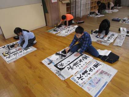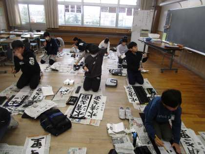 5年生 書き初め練習 公開日 2024/12/18 更新日 2024/12/18 5年生 書き初めの練習に力が入ってきました。筆の使い方や全体のバランスをとることが上手になってきています。書き初め大会に向けて集中して練習に取り組んでいます。