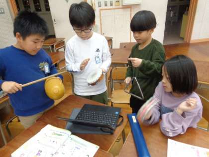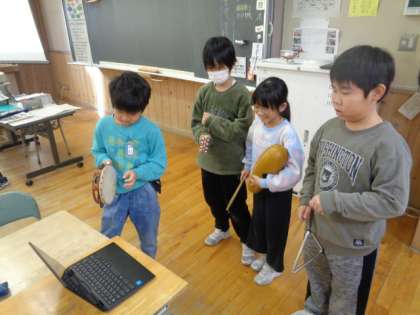 3年生 クロックミュージック 公開日 2024/12/20 更新日 2024/12/20 3年生 いろいろな音の響きに親しむ音楽作りをしています。約30秒で1周する時計の針の動きに合わせて、即興的に音をつなげたり重ねたりしました。