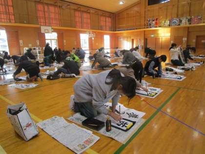 6年生 書初練習 公開日 2024/12/20 更新日 2024/12/20 6年生 今日の書初練習は、姿勢を意識しました。紙をしっかり押さえたり、力が入れやすいように膝を立てたりしながら、力強く書きました。