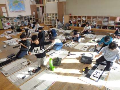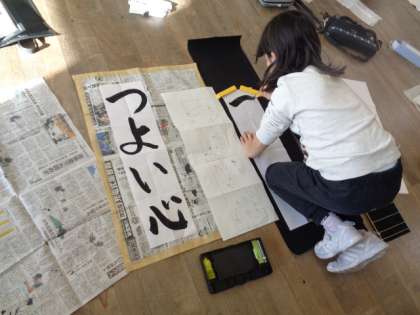 3年生の書初は「つよい心」です。始筆、終筆等に気を付けながら書きました。