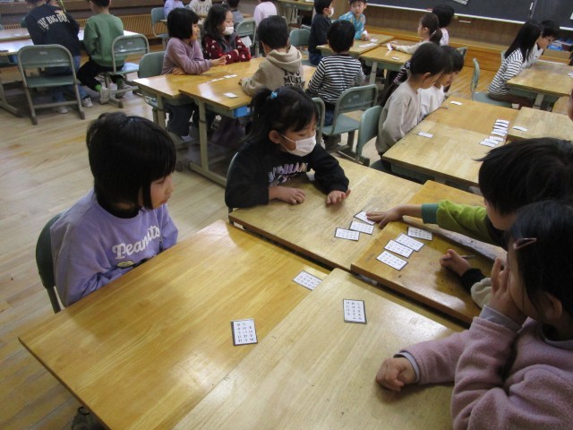 1年生 百人一首、がんばっているよ! 公開日 2025/01/14 更新日 2025/01/14 1年生 百人一首大会に向けて、一生懸命に練習に取り組んでいます。少しずつ歌を覚え、上の句で取ることができる子供も増えてきました。自分の力を出し切れるといいですね。