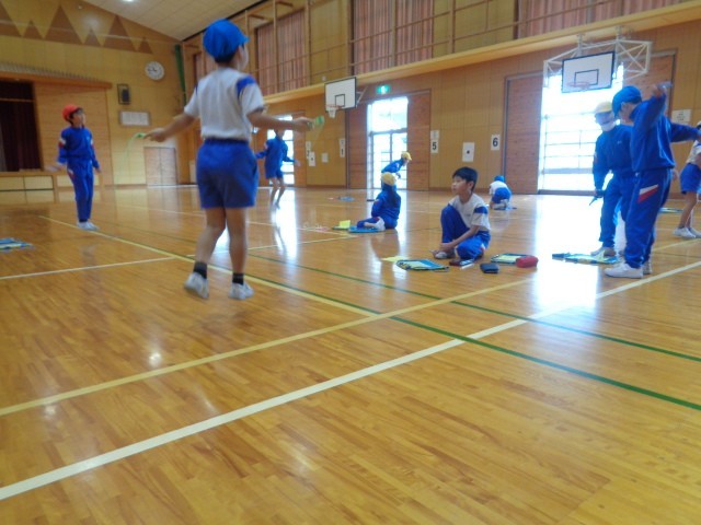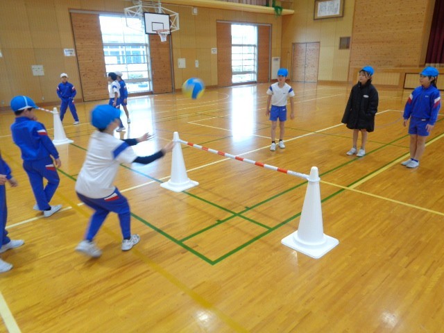 短なわとネット型ゲームのプレルボールの練習をしました。