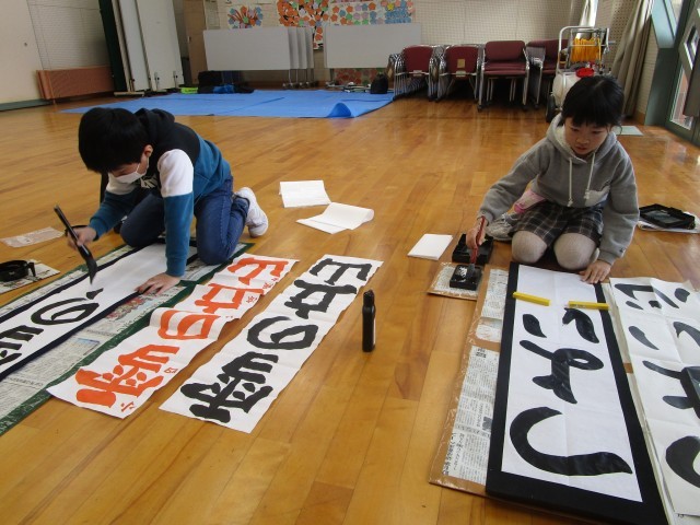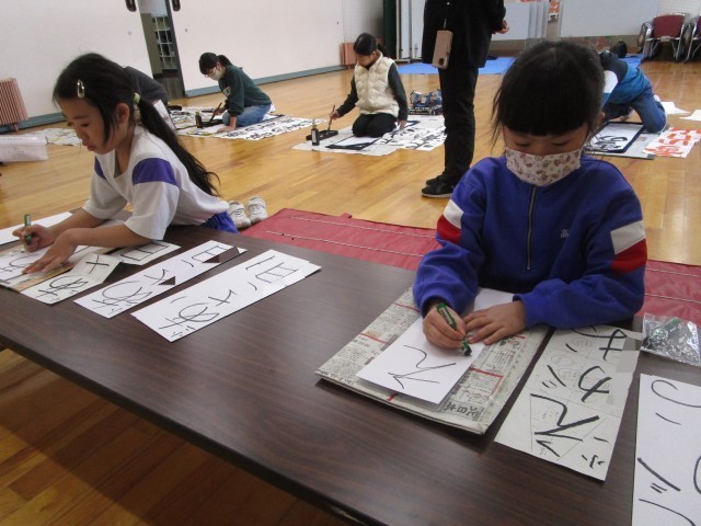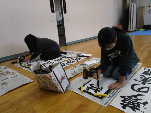 県書初大会に向けて目標をもって練習に取り組んでいます。一筆一筆、丁寧に書きました。