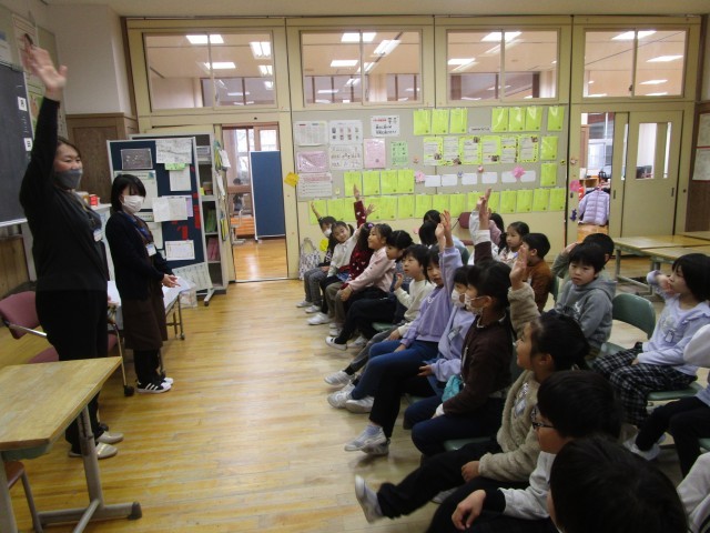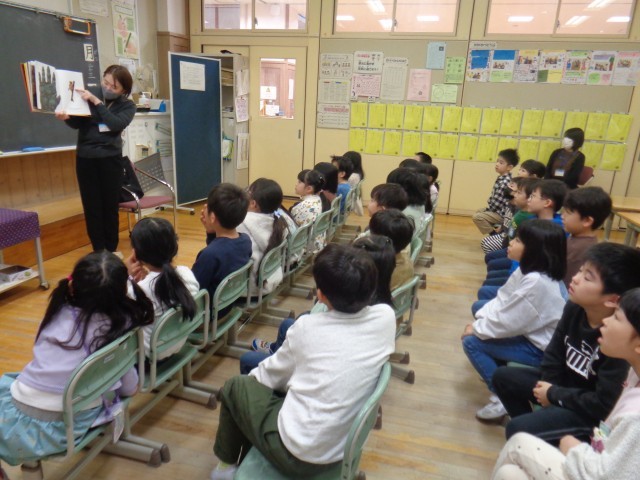八尾図書館ほんの森の方が、学校に来てくださいました。