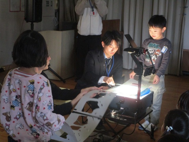 ジャック・リー・ランダルさんが来校し、影絵ライブを行ってくださいました。子供たちは、想像力を働かせ、影絵の世界にどっぷり浸かり、たくさんの笑い声が響いていました。教室に戻ってからも「赤ずきんちゃんが…」「3びきのこぶたが…」などと、面白かったことについてのおしゃべりが止まらない様子でした。