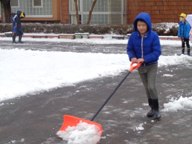 久しぶりに積雪があった今朝、登校するとすぐに除雪に取りかかってくれた6年生。みんなのために寒い中、一生懸命に働く姿が素敵でした。