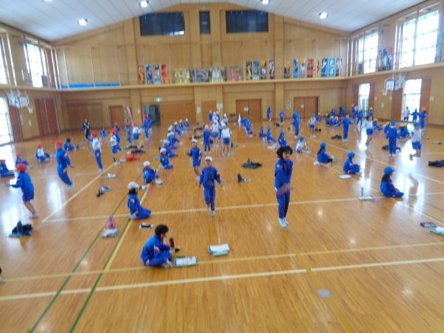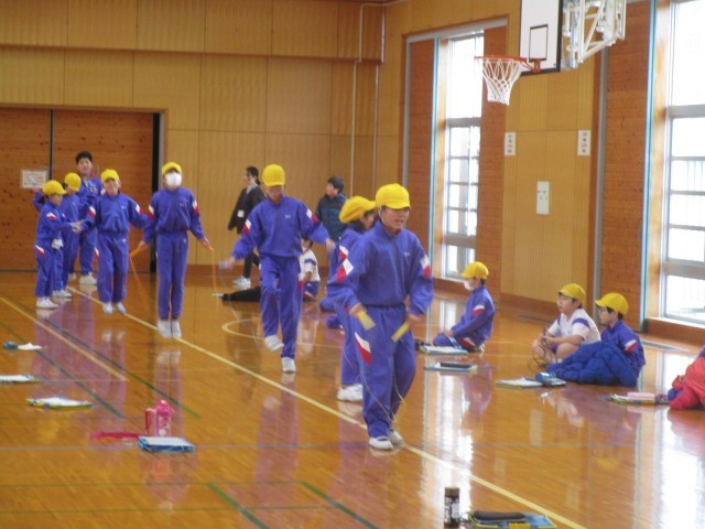 なわとび交流会に向けて中間記録会を行いました。「最後までがんばれ」「連続で跳ぶのがすごい」等、みんなで励まし合いながら記録会に臨みました。