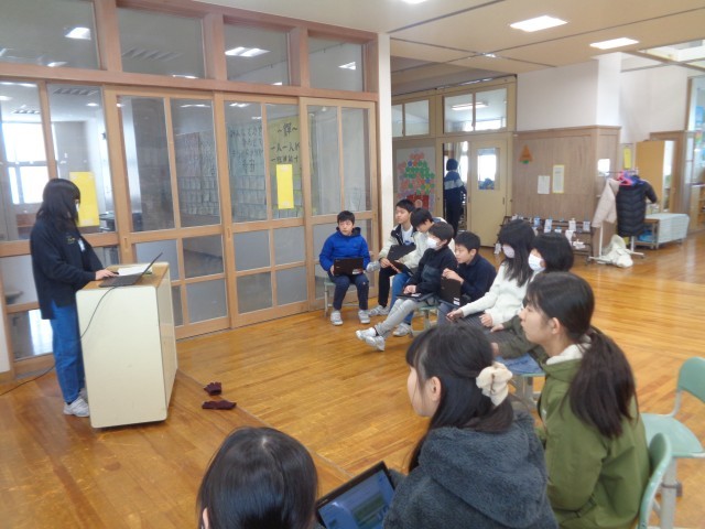 学習参観に向けて、中間発表会を行いました。友達の発表をよく聞き、発表の仕方やスライドのまとめ方など、自分の発表に活かせることを見つけていました。よりよい発表にしようと一生懸命取り組んでいます。