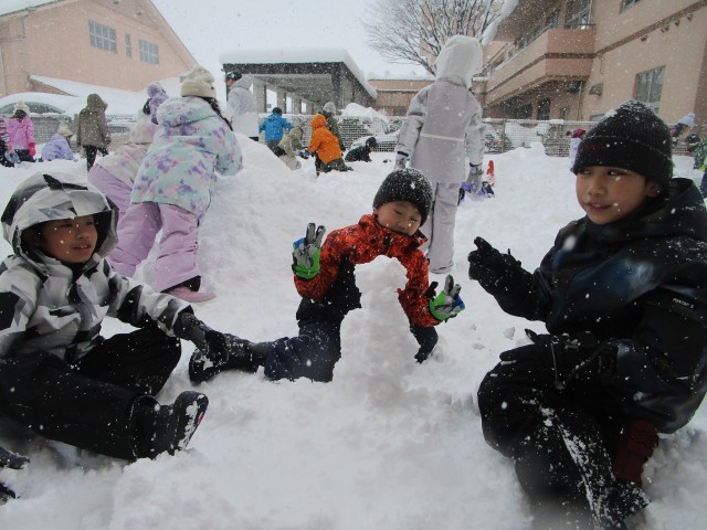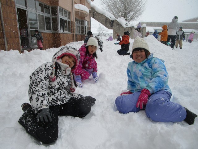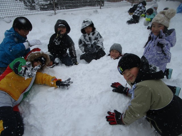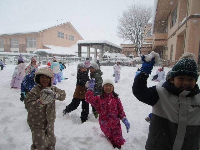 本日、2年生は雪遊びをしました。子供たちは雪に大はしゃぎで、友達と楽しそうに遊んでいました。