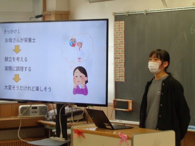 総合的な学習の時間に、なりたい仕事について調べ、今の自分にできることを実践してきました。