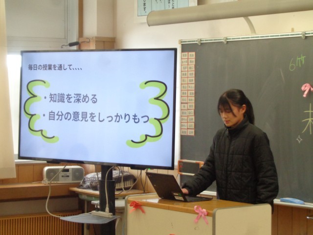 今日は、学習を通して考えた、「なりたい自分」についての発表を行いました。
