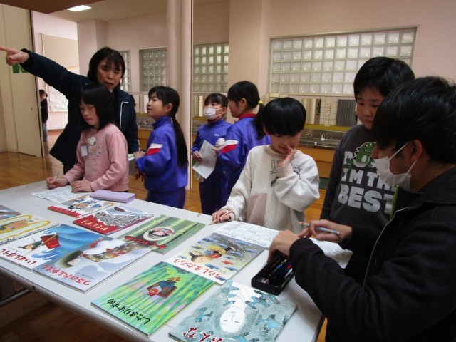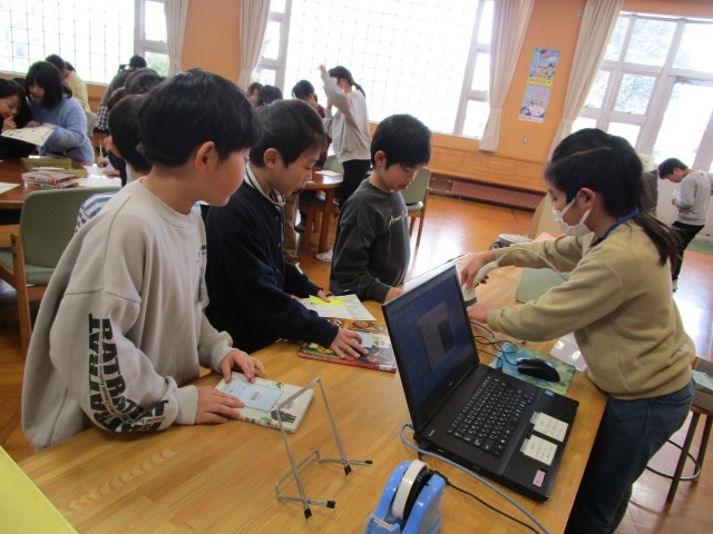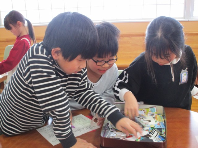昼休みに、図書掲示委員会の「読書縁日」に参加しました。昔話ビンゴや、しおり作りなど、お店がいっぱいあって、時間が足りないと感じるほど、子供たちは楽しんでいました。委員会の皆さんの楽しませる工夫を感じて、たくさんの笑顔が見られました。