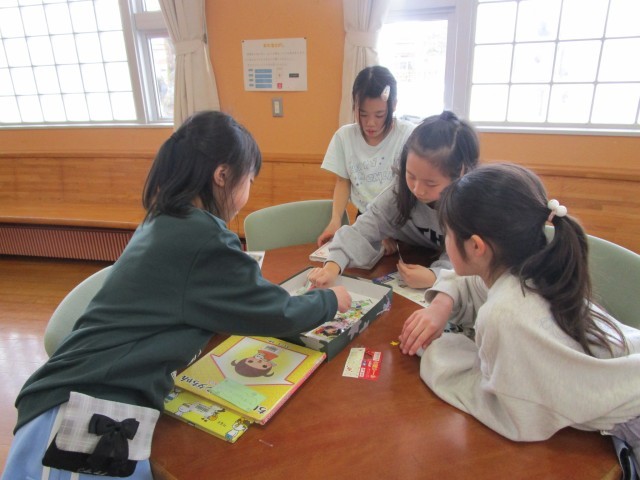 今日は、図書室に本を借りに行きました。新しく入った本や、昨日の読書縁日でもらったトリプルブックカードを使って3冊借りている子もいました。学校司書の先生に、しおりをつくる機会をいただき、「お父さんが好きな犬のシールがあるかなあ」「こんなイラストもあって可愛いよ」などと言いながら、しおり作りを楽しくする様子が見られました。今週末も是非、家族で本に親しむ時間をつくってみてください。