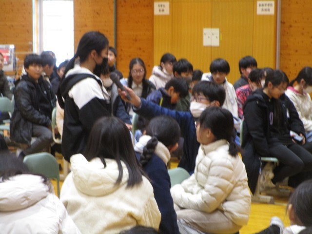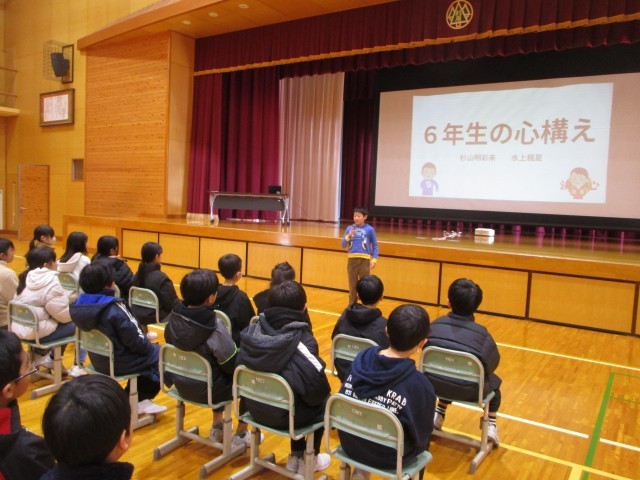 5年生 バトンタッチ集会 第2部 公開日 2025/02/14 更新日 2025/02/14 5年生 第2部では、6年生になるための心構えについて教わりました。6年生になると仕事や役割が増えて大変な一方、やりがいや楽しさを感じる活動がたくさんあることを知りました。勉強はさらに難しくなるため、今のうちに5年生の復習をしておくとよいこともアドバイスされました。一人一人が多くの学びを得たバトンタッチ集会でした。