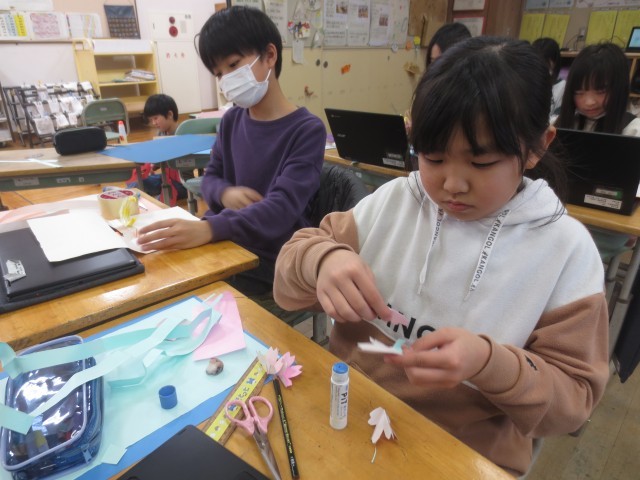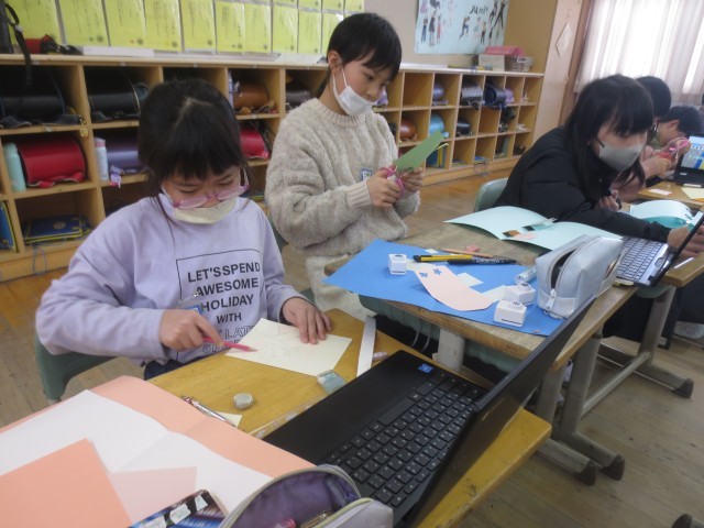 卒業を祝う会に向けて、招待状を作っています。今回は、飛び出す招待状を作ることにしました。6年生さんに喜んでもらえるように心をこめて作っています。