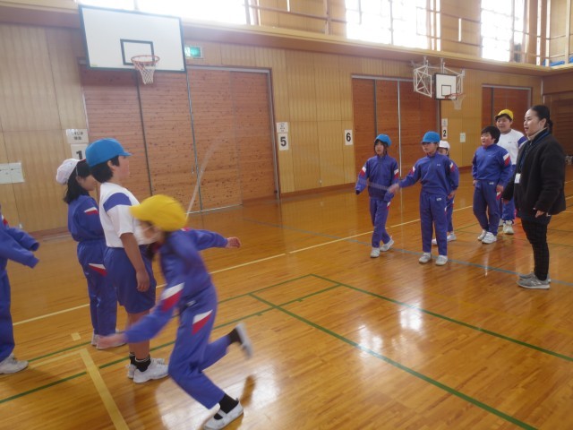 単縄の後は大縄を行いました。各クラス2チームずつに分かれ、練習してきました。仲間と声を掛け合いながら、目標に向かってがんばる姿がすてきでした。