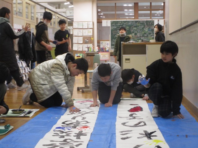 卒業プロジェクトとして、学校や地域のためにできることを考えています。校舎チームは、メッセージを制作中です。