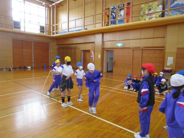 5年生 なわとび記録会 公開日 2025/02/21 更新日 2025/02/21 5年生 今日はなわとび記録会があり、2年生と一緒に目標にチャレンジしました。大縄8の字跳びは、2つのチームに分かれて記録に挑戦しました。その後は短縄跳びで、それぞれが選んだ種目の記録を取りました。目当てを達成できた子も、できなかった子も、今日まで頑張った努力は立派でした。まだまだ寒い日が続くため、これからも縄跳びで体力づくりに励んでいきます。