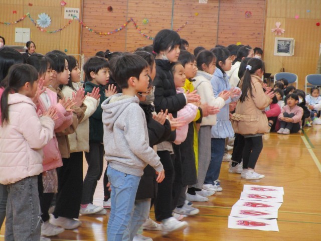 次に、「ありがとうの花」の歌を手話をしながら、感謝の気持ちを込めて歌いました。終わった後に、6年生さんから「感謝の気持ちがちゃんと伝わってきたよ」と言ってもらい、とても嬉しそうにしていました。