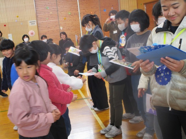 1年生は、6年生と入場するという大役を務めました。今までお世話になった大好きな6年生さんと手を繋げて、たくさんの笑顔が見られました。メダルや手紙も渡し、感謝の気持ちが伝わってよかったですね。