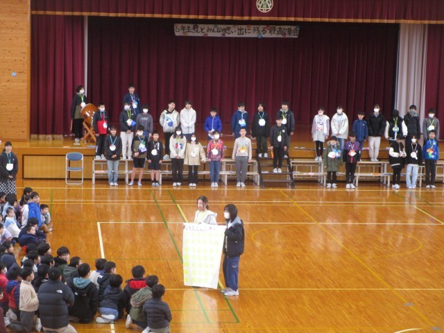 6年生 卒業を祝う会サプライズ 公開日 2025/02/28 更新日 2025/02/28 6年生 卒業を祝う会に向けてたくさん準備し、当日もプレゼントや劇、ダンス、クイズ等で楽しませてくれた下級生に、手紙を送りました。また、メッセージ垂れ幕を披露しました。