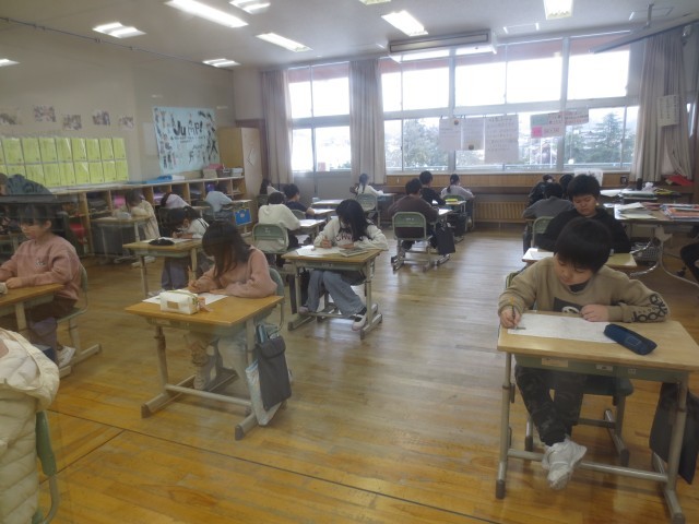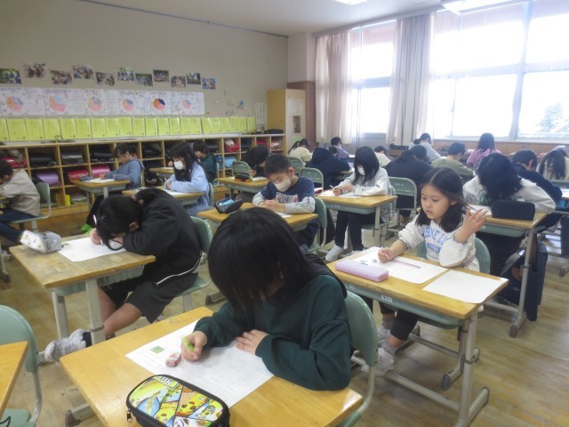 今週は、学習のたしかめの週です。今日は算数を行いました。「休みの日に勉強したよ!」と自信満々に報告してくれる子供や、休み時間に友達と教科書を開き復習する子供が見られました。明日は、国語の学習のたしかめを行います。