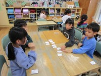 竹組の子供たちも、「穴を開けてプラネタリウムみたいにしたいな」などと、一人一人が願いをもち、生き生きと活動に取り組んでいました。活動が終わっても、続けたい様子でしたが、しっかりと気持ちを切り替えて、片付けを素早く行っていました。