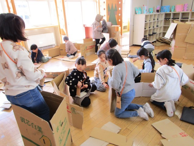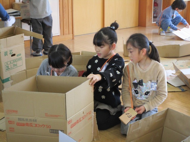 2年生 竹組 図工「だんボールに入ってみると!?」2回目
