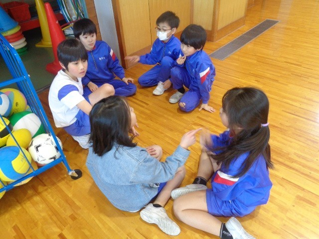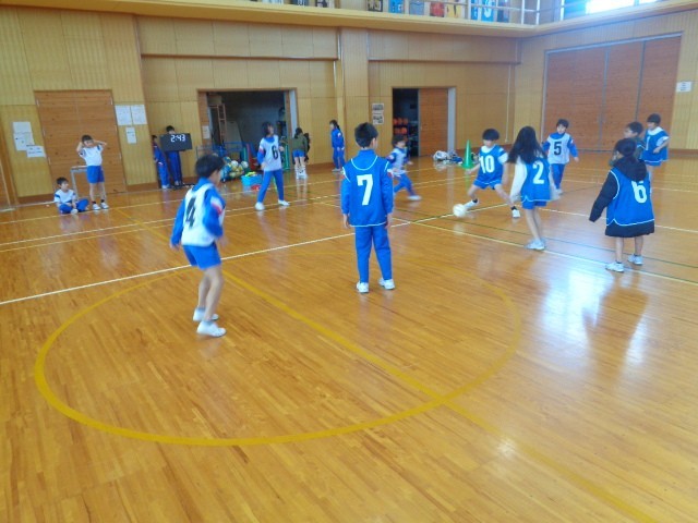 パス練習やドリブル練習、グリッドサッカーをした後に、フリーゾーンを設けた試合をしています。試合の合間に作戦会議をして、どうしたらゴールに結びつくのか話合いをしています。