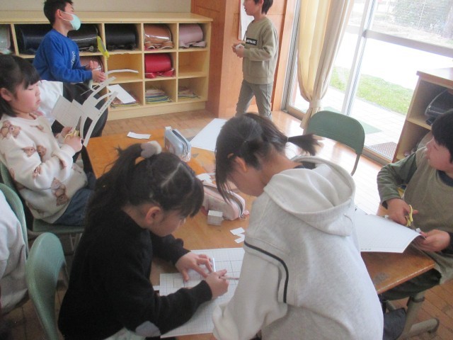 2年生 算数科 はこを組み立てよう 公開日 2025/03/12 更新日 2025/03/12 2年生 算数科「はこの形」の学習で、工作用紙で箱を作る学習をしました。子供たち全員、自分たちの力で箱を作り上げることができました。