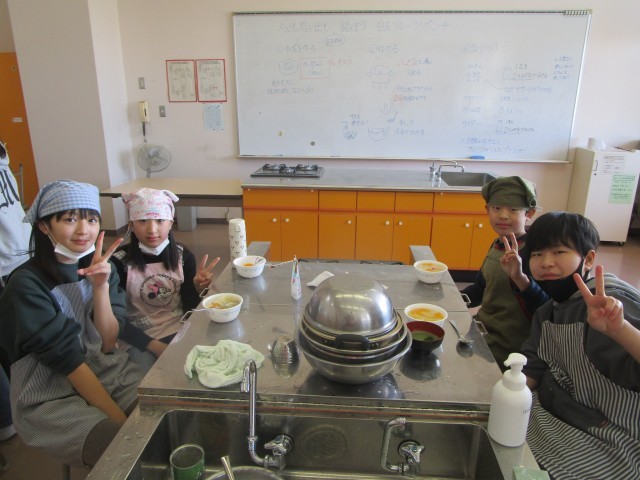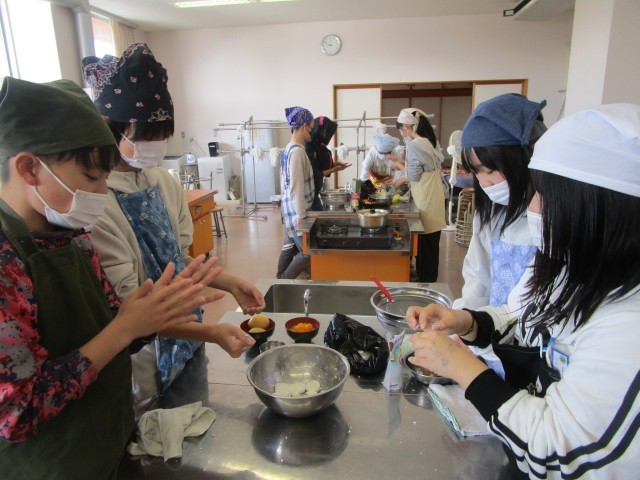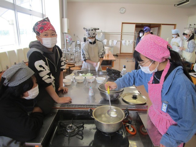 白玉作りに苦戦しながらも仲間と協力しながら楽しく調理していました。