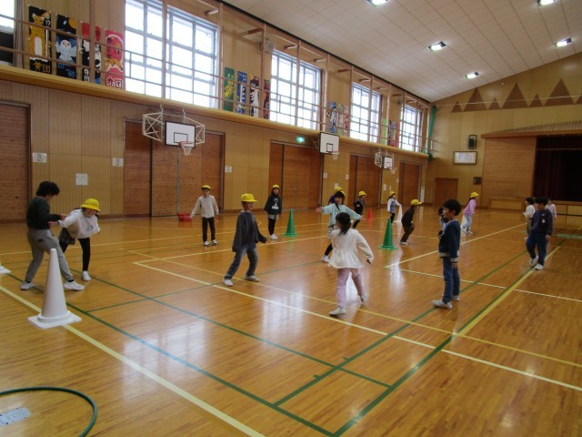次に、体育の時間にやったことのある「たからとりおに」をしました。2チームに分かれて、白熱した試合になりました。