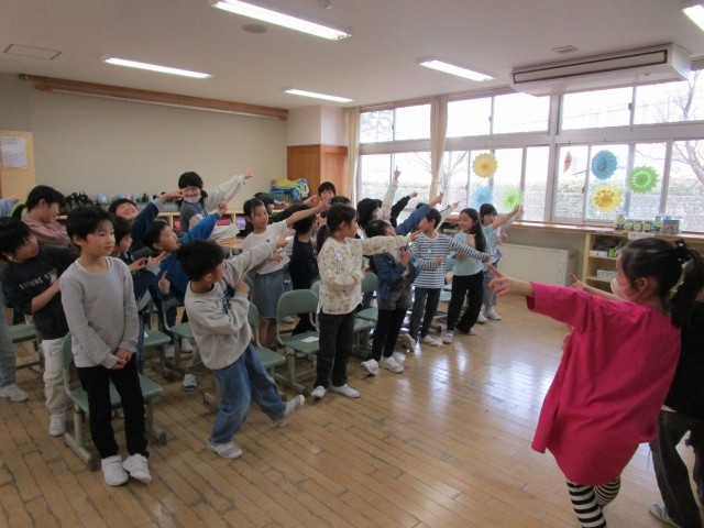 音楽係の音楽クイズ楽しんだ後は、朝の歌で歌ったことのある「アドベンチャー」を歌ったり、踊ったりして、みんなで楽しみました。