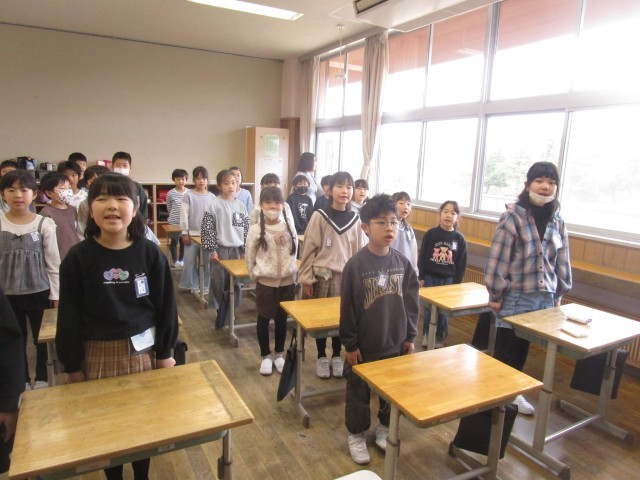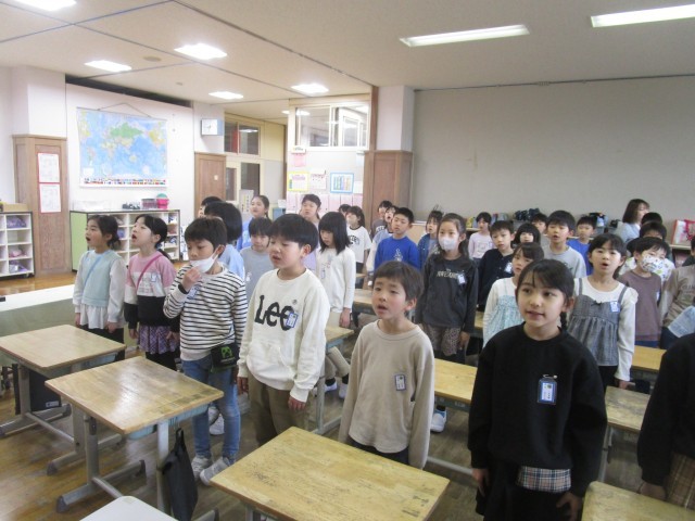 入学式に向けて、校歌の練習を行いました。入学する1年生さんへおめでとうの気持ちを込めて、口を大きく開けて歌いました。