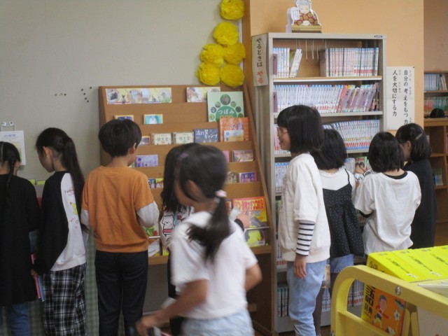3年生になって初めて本を借りに行きました。読みたいと思っていた本を借りることができて、とても嬉しそうでした。