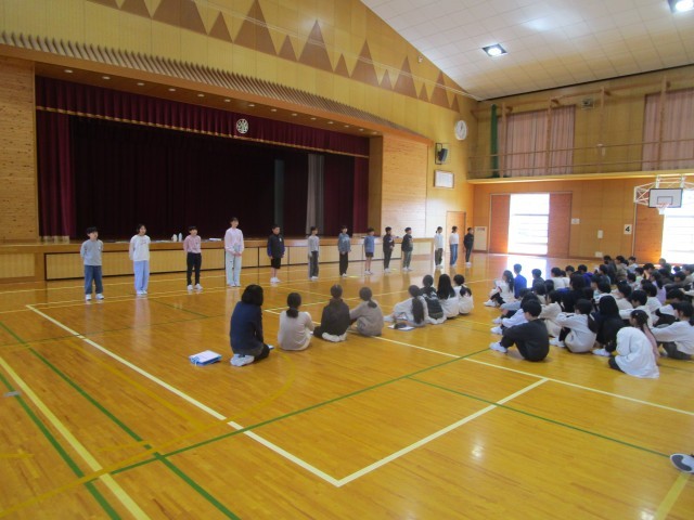 6年生 運動会団役員オーディション 公開日 2025/04/15 更新日 2025/04/15 6年生 運動会の団役員を決めるオーディションを行いました。校長先生、教頭先生、教務主任の先生、5年生に見守られ、候補者が運動会への熱い思いを語りました。候補者は校歌を歌ったり、3・3・7拍子を披露したりするなど、団を率いる自分の姿をイメージしている様子でした。小学校生活最後の運動会を盛り上げようとする子供たちの姿はとても輝いていました。