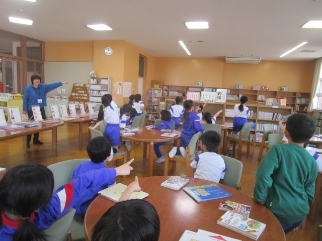 司書の先生に、本の分類の仕方について教えていただき、実際に本の背表紙の数字を見て本を分類しました。「分類の違う本を2冊借りてみよう」と声をかけると、子供たちは図書室内を探検するように見ながら、読んでみたい本を見付けて借りることができました。