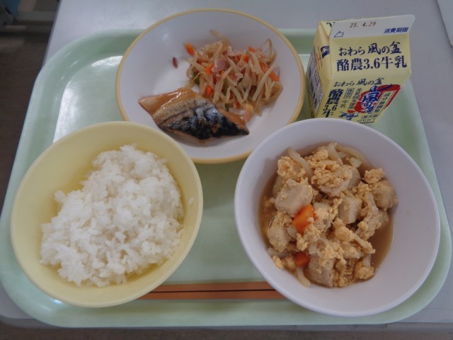 今日はの卵とじには、高野豆腐が入っていました。高野豆腐の「高野」とは、「高野山」で作られた豆腐料理なので、「高野豆腐」という名前が付いたそうです。高野豆腐には、カルシウムや鉄分が多く含まれています。卵との相性もよく、栄養たっぷりで、おいしかったです。