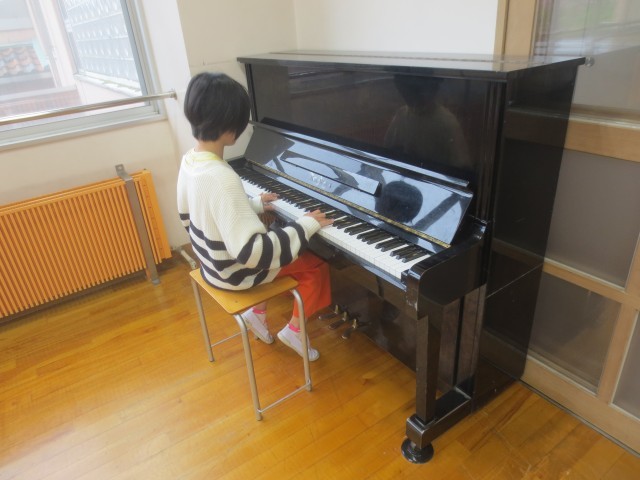 登校してから朝の会まで、自分ですることを決め、ピアノの演奏や生き物係の活動、体育館で体力を高める運動等を行っています。