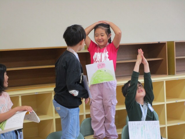 「ふきのとう」の音読劇発表会をしました。自分の役になり切って、台詞だけでなく動き等も工夫する姿が見られました。