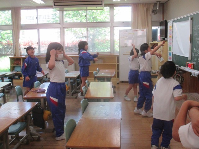 各団のダンス係を中心に考えたオリジナルダンスを、色団ごとに分かれて練習しました。今週はいよいよ1年生に教えて、お手本として踊ってみせます。かっこいい2年生を目指して頑張っています。
