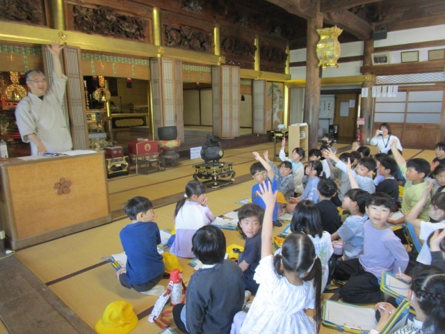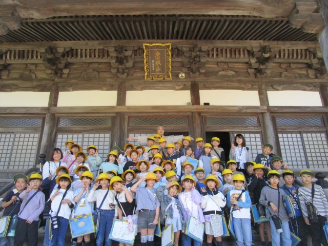 西勝寺では、杉原の歴史について教えていただきました。4000年も前から杉原に人が住んでいたことを知り、驚く子供たちでした。