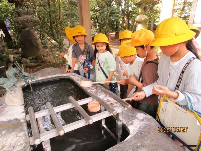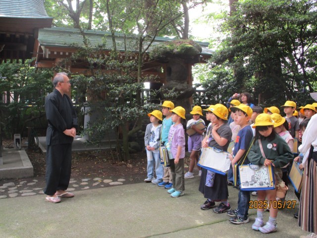 杉原神社では、歴史や由来等について詳しく説明していただきました。杉の子たちは、気になったことを積極的に質問していました。黒田公民館では、遊具で遊んだり木の実を探したりしました。「神様に守られていることが分かったから、感謝してお参りしたい」、「木の実がたくさん落ちていたから、楽しい遊びができそう」などと、「すぎはらのすてき」をたくさん発見できたようです。