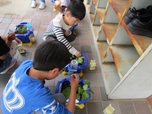 1年生 生活科 まびき 公開日 2025/05/27 更新日 2025/05/27 1年生 アサガオが順調に成長してきたので、間引きをしました。その後、追肥をしました。3つのアサガオを残したのですが、2つしかない友達に「ぼくのあげるよ」という優しい声が聞こえてきました。