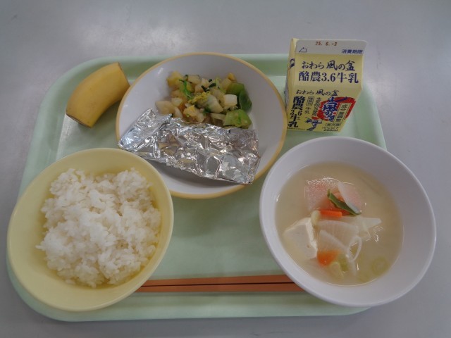今日は、きときとランチでした。「きときと」とは、新鮮でいきいきとした様子を表す富山県の方言です。きときとランチでは、富山県の郷土料理や特産品などを取り入れ、富山らしさを感じる献立を作成しています。今日は、富山県の郷土料理「呉汁」でした。大豆を水に浸し、すりつぶしたものを呉といい、呉をみそ汁に入れたものが呉汁です。大豆の風味が感じられ、おいしくいただきました。